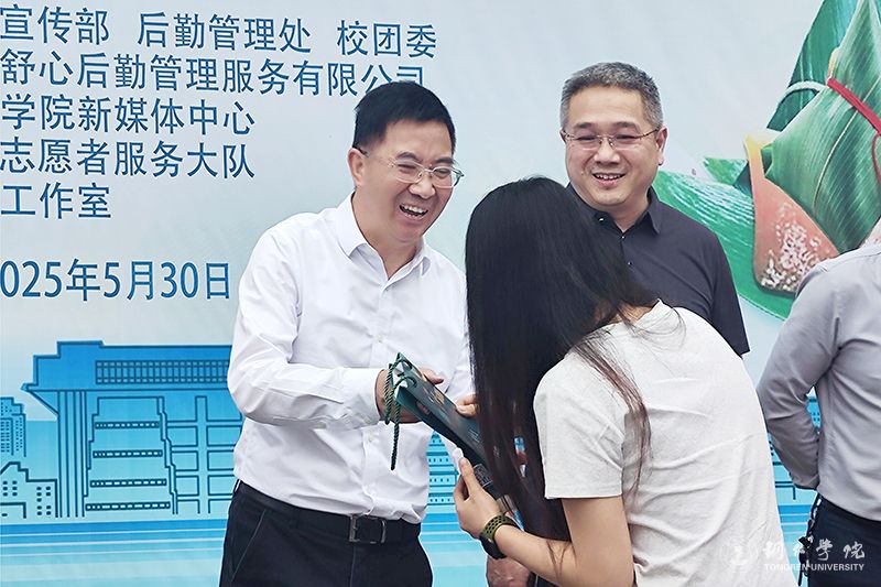 活动启幕,粽香四溢。校领导手捧温热的粽子,将端午安康的美好祝福,传递到各学院学生代表及留学生代表手中。一片片粽叶裹藏着深厚的人文关怀,一粒粒糯米凝聚着殷切的谆谆期许,传统文化在这温情脉脉的传递中,焕发崭新的生机与活力。