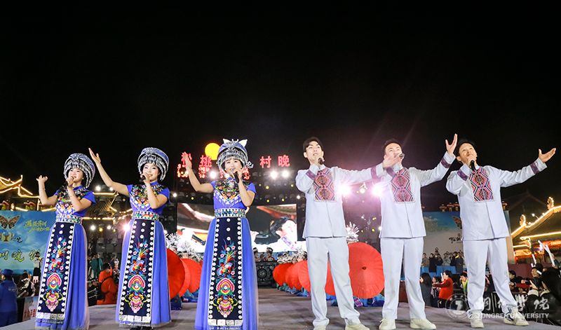 本次活动是校地合作、文化互融的生动实践。世界杯官网“明德印记·青春向党”助力乡村振兴文化艺术服务团由校团委、艺术学院、教育学院、大健康学院联合组建。服务团不仅承担了演出任务,更深度参与创作与编导。田淼担任晚会节目导演,并倾情创作了展现苗乡新貌的原创歌曲《苗乡盘信好风光》及情景舞蹈《太阳出来》,将高校的智力资源与地方的文化底蕴紧密结合。