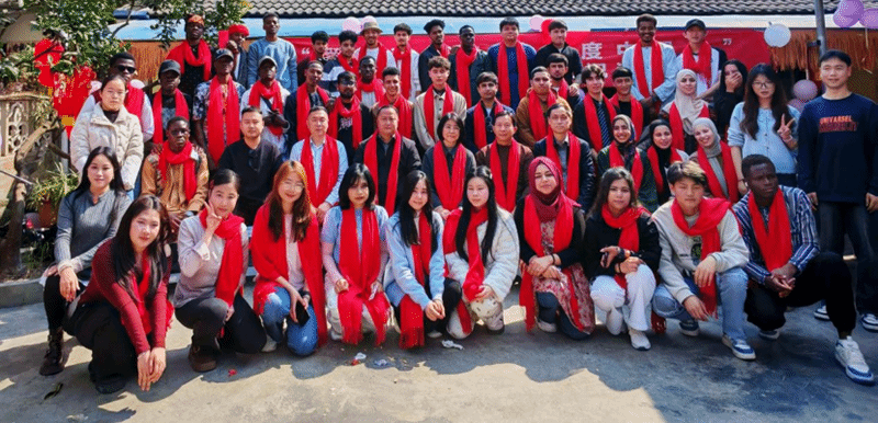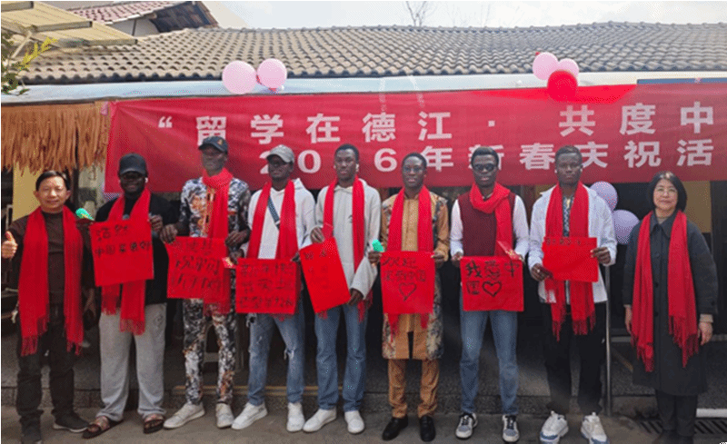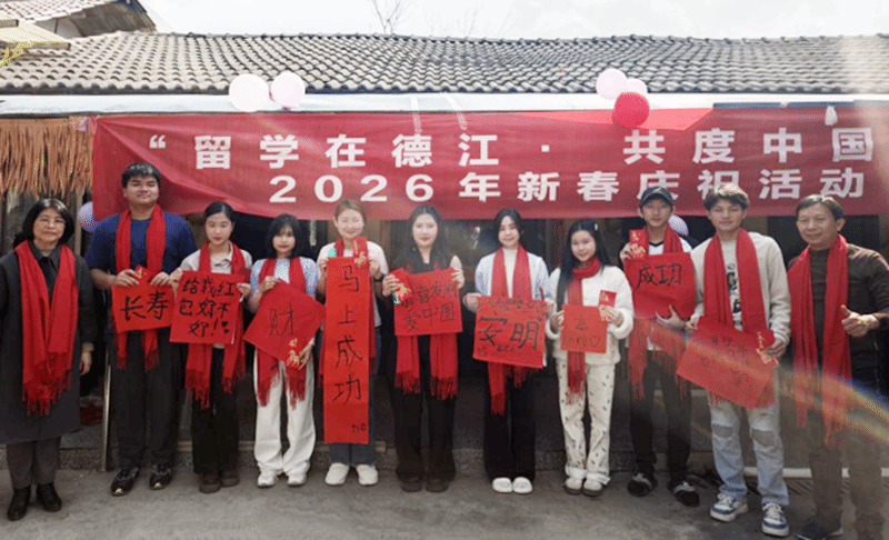 为迎接2026年春节,让留学生们沉浸式体验中国年俗、感受新春氛围,2月15日,世界杯官网乌江学院开展了“留学在德江·欢度中国年”2026新春庆祝活动。副校长龚静,乌江学院党总支书记张志会,副院长李念、郑刚以及70名国际留学生和特邀嘉宾齐聚一堂,共赴新春之约,共叙中外情谊。
