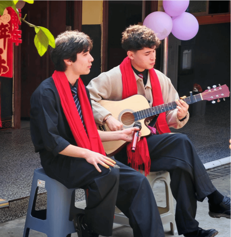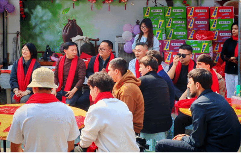活动现场,来自各个国家留学生带来了精彩的节目。塔吉克斯坦学生的吉他弹唱、老挝学生的中文朗诵、缅甸学生的缅语合唱以及布基纳法索学生的中文合唱,多元文化交融碰撞,赢得现场阵阵掌声。节目表演期间还穿插着紧张刺激的抽奖环节,郑刚为中奖同学颁发了奖品。文艺表演后,兼顾中西口味的暖心团圆宴开启,师生围坐畅谈,在美食中感受团圆年味。