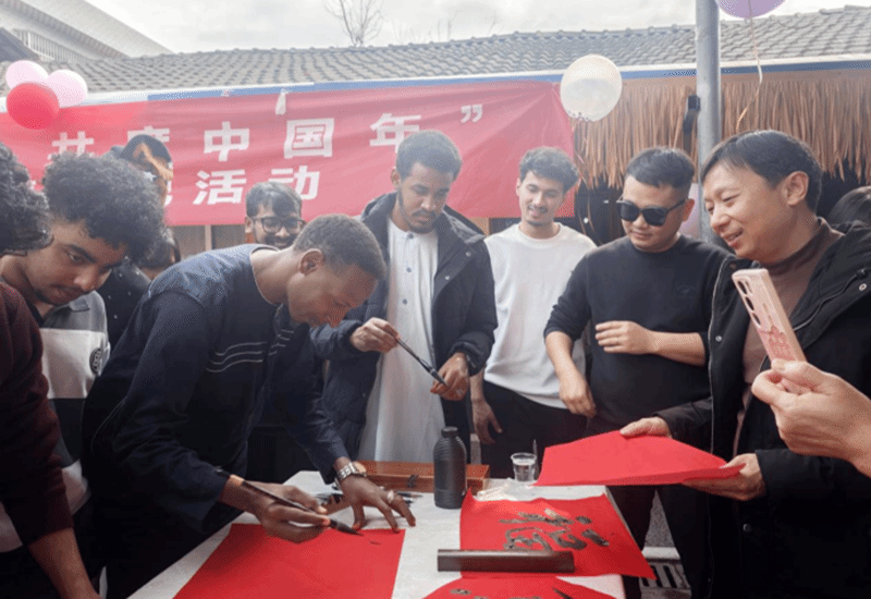 活动在龚静的致辞中拉开帷幕,她向留学生们介绍了中国春节“团圆和睦”的文化内核,并为留学生送上马年新春祝福。随后,留学生有序体验年俗活动,大家在现场书写新春祝福语,一笔一画间,感受着中国书法的魅力与新春吉祥的寓意。