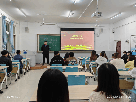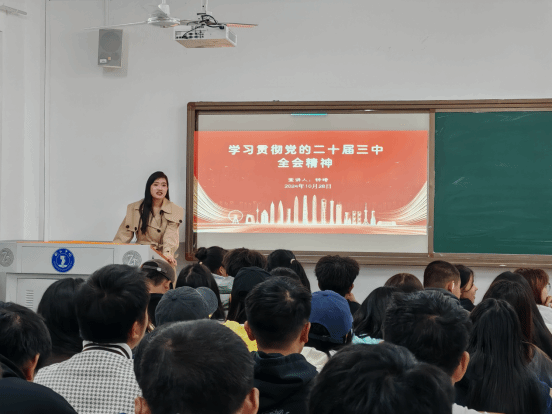 宣讲着重讲解《中共中央关于进一步全面深化改革、推进中国式现代化的决定》中的300多项改革举措,这些举措如同一幅宏伟画卷,全面勾勒出国家发展路径,涉及经济、政治、社会等各个维度,是全面深化改革的关键指引。此次每个宣讲会现场均气氛热烈,同学们认真领会,积极思考,为同学们在未来积极投身国家建设事业注入了强大的精神动力。