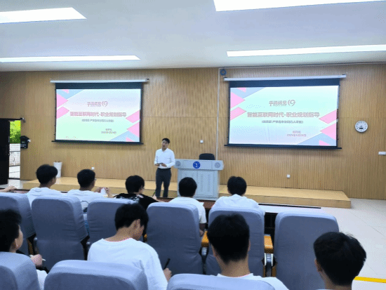 为应对人工智能时代就业市场新趋势,大数据学院于5月20日举办“计算机类学生职业生涯规划与就业指导”专题讲座,特邀华清远见教育集团职业讲师谢开元担任主讲。活动聚焦“智能互联网时代高质量就业”主题,吸引近200名计算机、数据科学、信息工程等专业学生参与,通过形势分析、策略指导和资源对接,助力学子明晰职业发展路径。