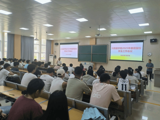 为切实做好暑期留校学生的安全教育与管理工作,确保学生度过一个安全、充实的假期,大数据学院就留校学生的各项工作进行了详细部署,并于2025年7月7日下午4:30,在博思楼103召开了暑假留校安全工作会议。会议由学院党委副书记安勐主持,学生科长易萌、辅导员代表李龙到会,全体申请留校学生参加。
