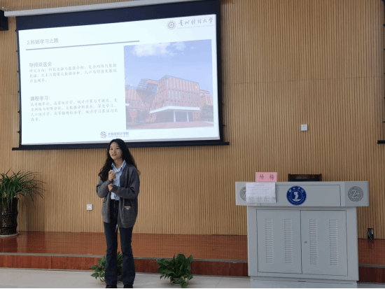 宣讲会伊始,黄贻望副院长对贵州财经大学大数据统计学院前来我院开展硕士研究生招生宣讲表示热烈欢迎和衷心感谢。贵州财经大学大数据统计学院大数据管理与应用系主任胡杰博士作为宣讲人,主要从学院的发展,学术动态,学科建设,学子风采四个方面向同学们介绍了贵校,并重点介绍了数博论坛会以及学院每月开展的学术活动,并详细解释了每个专业的培养目标、课程设计以及研究方向、领域。宣讲会上我院优秀校友杨梅同学作为美加墨世界杯官方网站大数据学院2022届统计学专业毕业生、贵州财经大学2022级大数据与统计学院硕士研究生的两个身份向在场的同学们简单分享了她在贵州财经大学的读研生活以及当时考研的备考经验,并鼓励各位同学努力学习积极考研,为自己的梦想奋斗。宣讲会最后,同学们就报考研究生有关事项进行咨询,气氛热烈。