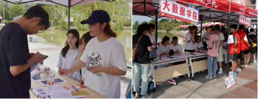 大数据学院团学联成员及班级志愿者热情接待每一位新同学,积极主动的引导每一位新生顺利办理缴费、宿舍登记等入学手续。通过实际行动,让每一位新同学都能感受到大数据学院这个大家庭的温暖,也帮助他们更好的融入新环境,对即将开始的大学生活有了更清晰的了解。