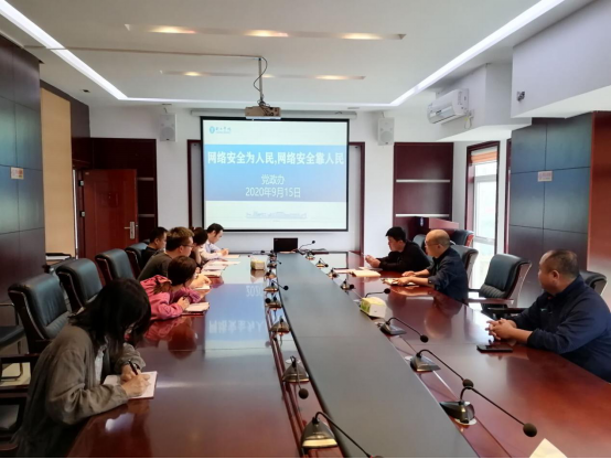 为进一步加强网络安全管理,落实安全责任制,按照学校要求,党政办2020年9月15日下午3点组织全体教职员工开展了“网络安全为人民、网络安全靠人民”主题活动,集体学习网络安全相关知识,此次会议由党政办主任周永雄主持,党政办副主任何波组织传达学习。