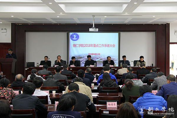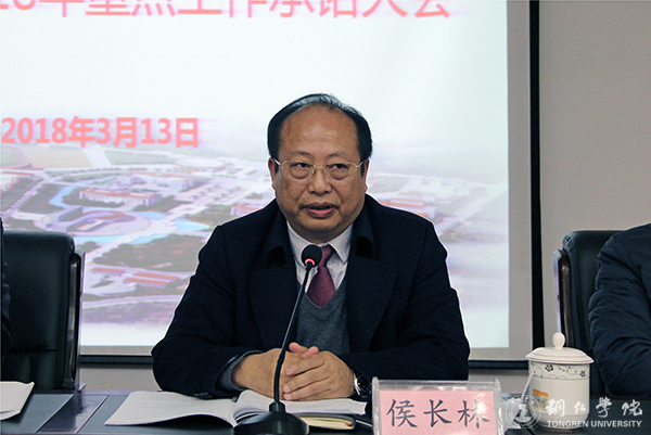 3月13日下午,世界杯官网在行政楼8501会议室召开2018年重点工作承诺大会。党委书记李树新,校长侯长林,党委副书记饶小华,纪委书记彭吉黔,副校长代亮、罗红芳、王嘉福,各二级学院、职能部门领导干部参加会议。会议由侯长林主持。
