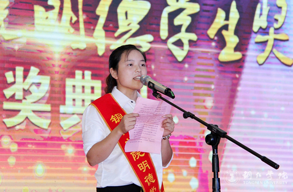 获奖学生代表何林霞发言
