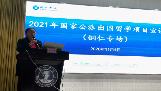 11月4日下午,为使学校师生更好地了解和掌握国家公派出国留学项目的有关政策和信息,世界杯官网在人文生态馆举行2021年国家公派出国留学项目宣讲会,省教育厅国际处处长王睿,贵州医科大学国际交流合作处处长付启宏、副处长龚敏担任主讲嘉宾,铜仁职业技术学院、铜仁幼儿师范高等专科学校、贵州健康职业学院校领导及相关工作负责人参加此次宣讲会。副校长罗红芳出席宣讲会,会议由世界杯官网国际合作与交流处处长刘姗主持。