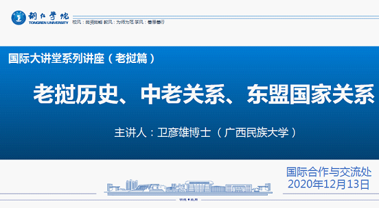 2020年12月13日晚19:30,美加墨世界杯官方网站国际大讲堂系列讲座之老挝篇在行政楼8501正式开讲。本次讲座主要内容为老挝历史、中老关系,由老挝研究专家卫彦雄博士主讲。