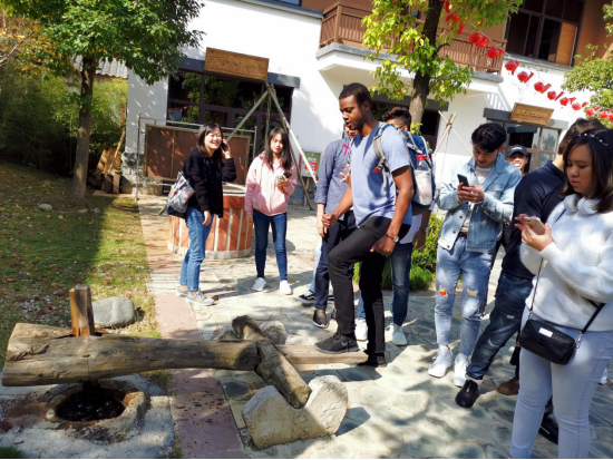 思南县是此次活动的第一站,游览了思南古城、感受了乌江文化、体验了刻纸和草木染等地方特色文化。思南之旅结束后到达松桃苗族自治县留宿一晚,11月2日早上从酒店出发,到达松桃第一站天龙湖景区、苗族文化陈列馆,感受了厚重的松桃苗族文化;下午到达潜龙洞景区,国际学生们情绪高涨,感受了壮丽的钟乳奇观;最后在苗王城结束了此次文化交流活动,全体国际学生合影留念。