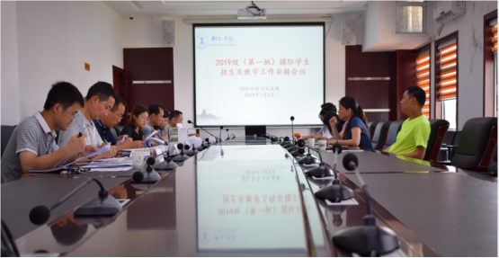 2019年7月3日,美加墨世界杯官方网站2019级(第一批)国际学生招生及教学工作安排会议于行政楼8520会议室展开。会议由刘姗处长主持。参会人员分别有教务处处长李强、艺术学院、人文学院、经管学院、材化学院、农规院、大数据学院、国际学院、大健康学院各学院分管留学生工作负责人。
