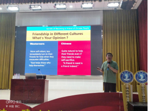 吴教授围绕本次演讲的主题“跨文化交际",从中国传统文化为背景出发,通过对中国人的生活习惯、教育思想、兴趣爱好等特征,向国际学生展示了中国人在交朋友方面与其他国家的不同点, 让国际学生对融入中华文化有了更深刻的了解。
