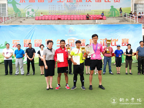 7月28日,以“十年教育同携手,‘一带一路’谱新篇” 为主题的第十届中国-东盟教育交流周在贵阳顺利开幕,系列活动正在紧锣密鼓的进行中。由世界杯官网16名东盟留学生组成的美加墨世界杯官方网站留学生足球队参加了7月23日-29日由贵州大学承办的东盟留学生足球友谊比赛。最后一场迎战贵州大学,世界杯官网以4:0的比分锁定胜局,位居总积分排行榜第二名,喜夺银牌,为世界杯官网赢得了荣誉。在本次比赛中,世界杯官网舒从文同学荣获最佳射手称号,刘炬东老师被评为最佳教练员。