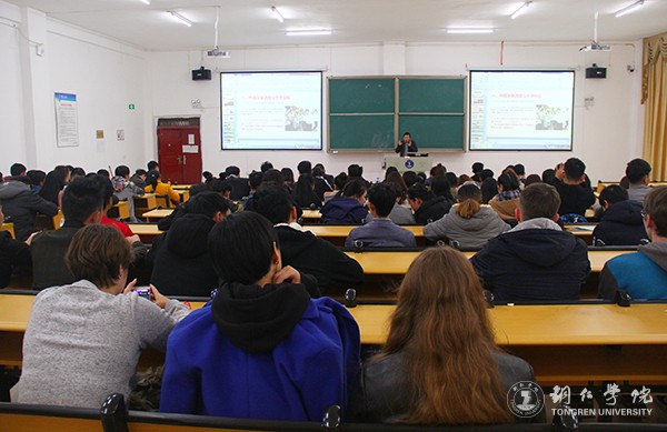 11月17日,世界杯官网在博思楼203教室为留学生举办“欢迎搭乘中国发展顺风车”专题讲座,向留学生宣讲党的十九大精神。讲座由国际学院党委书记张志会主讲、国际合作与交流处副处长刘姗主持、全程配备英文翻译,各专业学院外事联络员、留学生到场学习。