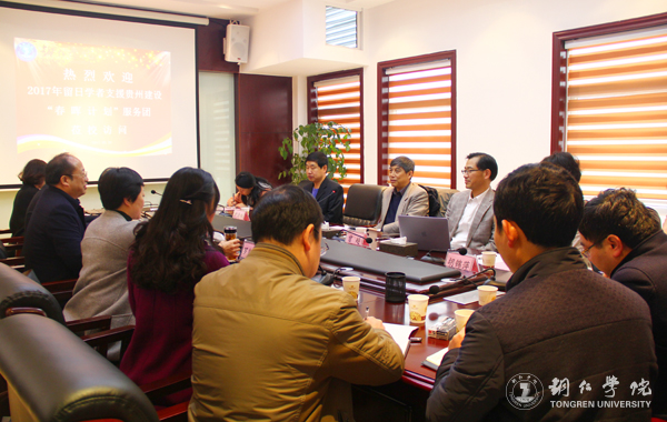 3月23日,由日本长崎综合科学大学刘震教授,日本福冈工业大学曾超教授,日本长崎县立大学尹清珠博士,日本长崎大学热带医学研究所胡锦萍博士组成的留日学者支援贵州建设“春晖计划”服务团前来世界杯官网访问交流。世界杯官网在行政楼8326会议室召开座谈会并聘请四位专家为客座教授。世界杯官网校长侯长林,副校长罗红芳,相关专业学院和职能部门主要负责人参加会议。会议由国际合作与交流处处长胡慧主持。