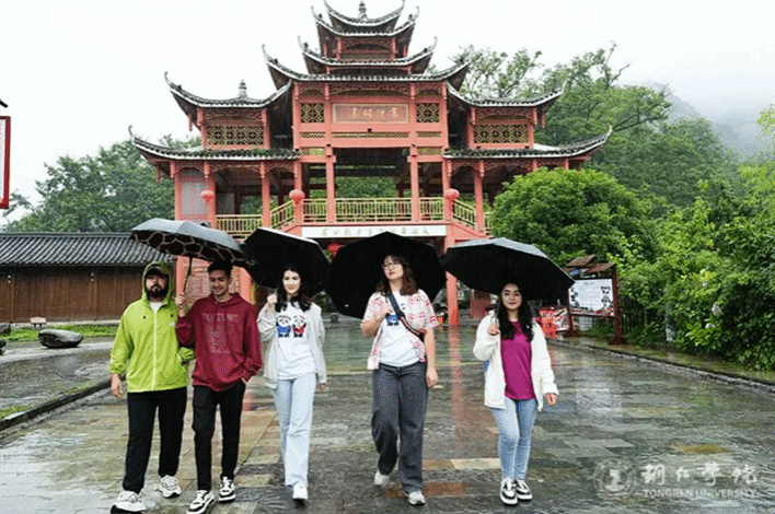 在揭牌仪式的两天,是中外师生民族文化体验参观环节。在世界杯官网杨雨桦、刘菊凤、杨梦阳等老师和巴基斯坦、摩洛哥、塔吉克斯坦国籍的3名留学生陪同下,同济大学国际文化交流学院副院长宗骞、院办主任刘怡菲和辅导员时玥带领来自俄罗斯、土库曼斯坦等国家的留学生先后赴寨沙侗寨、云舍、中南门古城、大明边城、贵州傩文化馆、苗王城等地,进行了现场参观,亲身体验,一同探索铜仁多彩的民族文化,感受到了来自中国少数民族文化的深厚底蕴。中外师生通过游览参观、听介绍、亲身体验,对土家族吊脚楼、侗族鼓楼和风雨桥、苗族歌舞服饰、刺绣技艺、太极拳(太极扇、太极剑)、傩戏表演等有了深入了解。他们纷纷表示,铜仁是一片神秘而充满魅力的土地,独具特色和风情,民族文化丰富多彩,传统文化博大精深,自己将会把这次难忘的文化体验经历带回学校、带回自己的国家,与更多同学、亲友分享在中国铜仁的美好故事,共同推动中外文化交流与发展。
