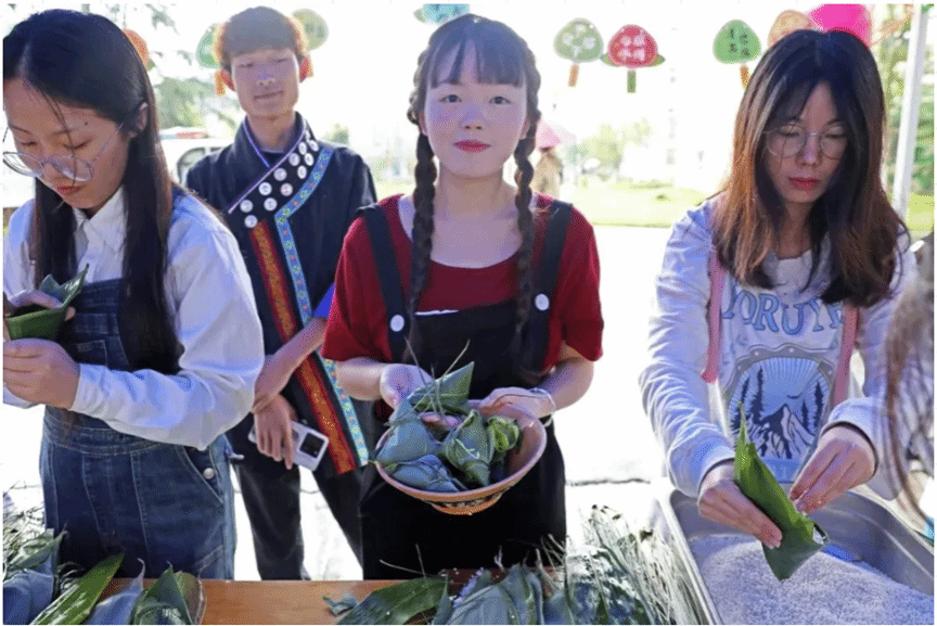 “这样才能包出好看的形状。”“这样才能把绳子扎得更紧,煮的时候不容易露馅。”在包粽子体验现场,经验丰富的食堂阿姨边包边向同学们传授经验。来自铜仁几所高校的外国留学生,也纷纷加入到活动中,与中国学生一起,学习包粽子,体验端午节文化,感受中华优秀传统文化的魅力。大家看着一个个包好的粽子,喜笑颜开,欢声笑语不断。每一颗粽子,都承载着师生对历史的敬畏、对文化的热爱和对未来的期待。