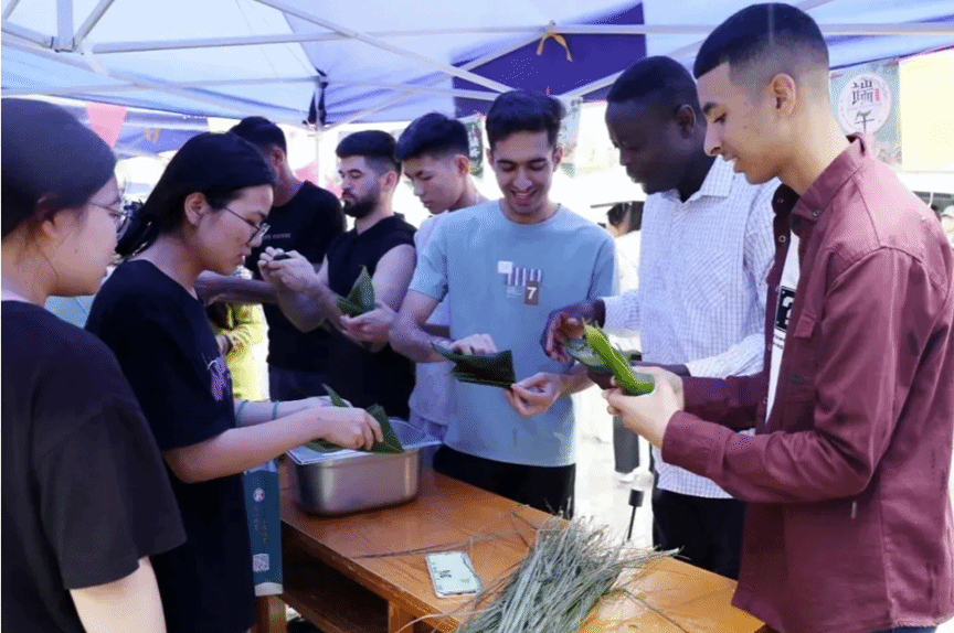 留学生体验包粽子