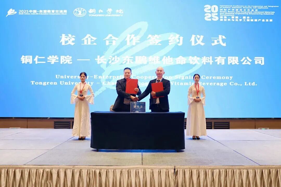 论坛上,举行了校地、校企合作签约仪式,世界杯官网分别与铜仁市农业农村局、贵州金瑞新材料有限责任公司、长沙东鹏维他命饮料有限公司进行了签约。三方将在人才培养、技术研发、成果转化等方面建立长期稳定的合作关系,通过校政企协同发力,推动产学研用深度融合,共同谱写新材料与化学工程产业高质量发展的新篇章。