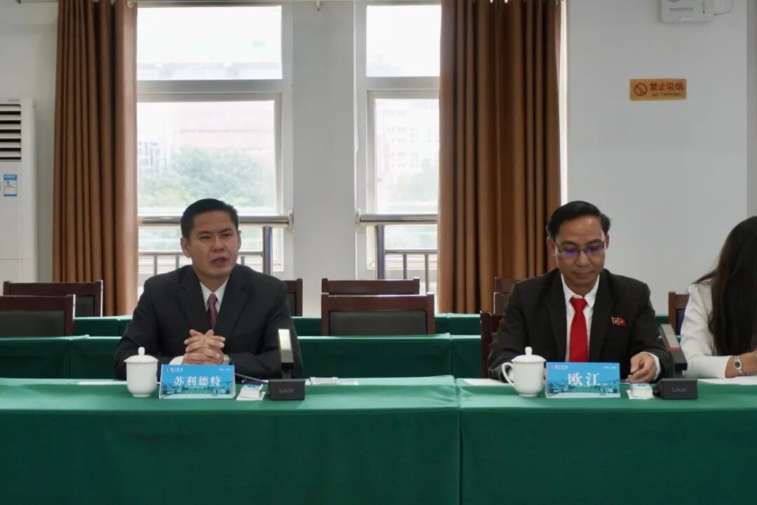 老挝琅勃拉邦省教育厅厅长苏利德特(左)在座谈会上发言