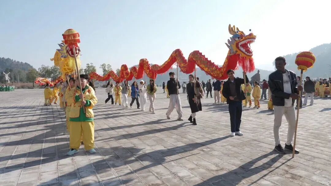 除民俗美食制作外,传统舞龙表演体验环节将活动氛围推向高潮。在专业老师的细致指导下,中外学子合理分工、默契配合,手持龙具稳步前行。伴随着欢快激昂的锣鼓声,五彩巨龙时而盘旋升空、时而蜿蜒翻滚,每一个动作都精准整齐,既展现出中华传统民俗的豪迈气势与喜庆氛围,也凝聚着中外学子的协作力量。外国留学生们全身心投入体验,不时用手机记录精彩瞬间,近距离领略德江民俗文化的独特韵味与深厚底蕴。来自巴基斯坦的留学生吴拉赫(中文名“开心”)也难掩喜悦,他表示,“自己来自‘巴铁’巴基斯坦,这次在德江品尝了糍粑,味道非常好,还和中国小朋友一起游玩,收获满满。”