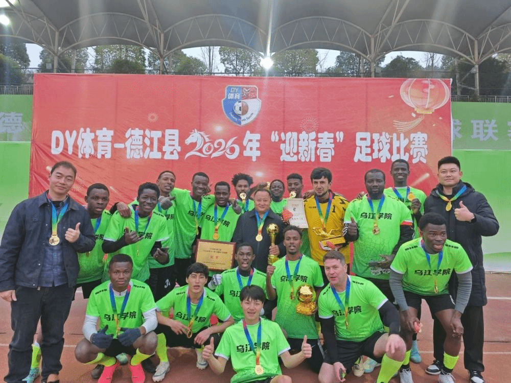 春节前夕,贵州省铜仁市德江县2026年“迎新春”足球比赛圆满落幕。一支由美加墨世界杯官方网站乌江学院的各国留学生组成的队伍一路过关斩将,最终捧起冠军奖杯。