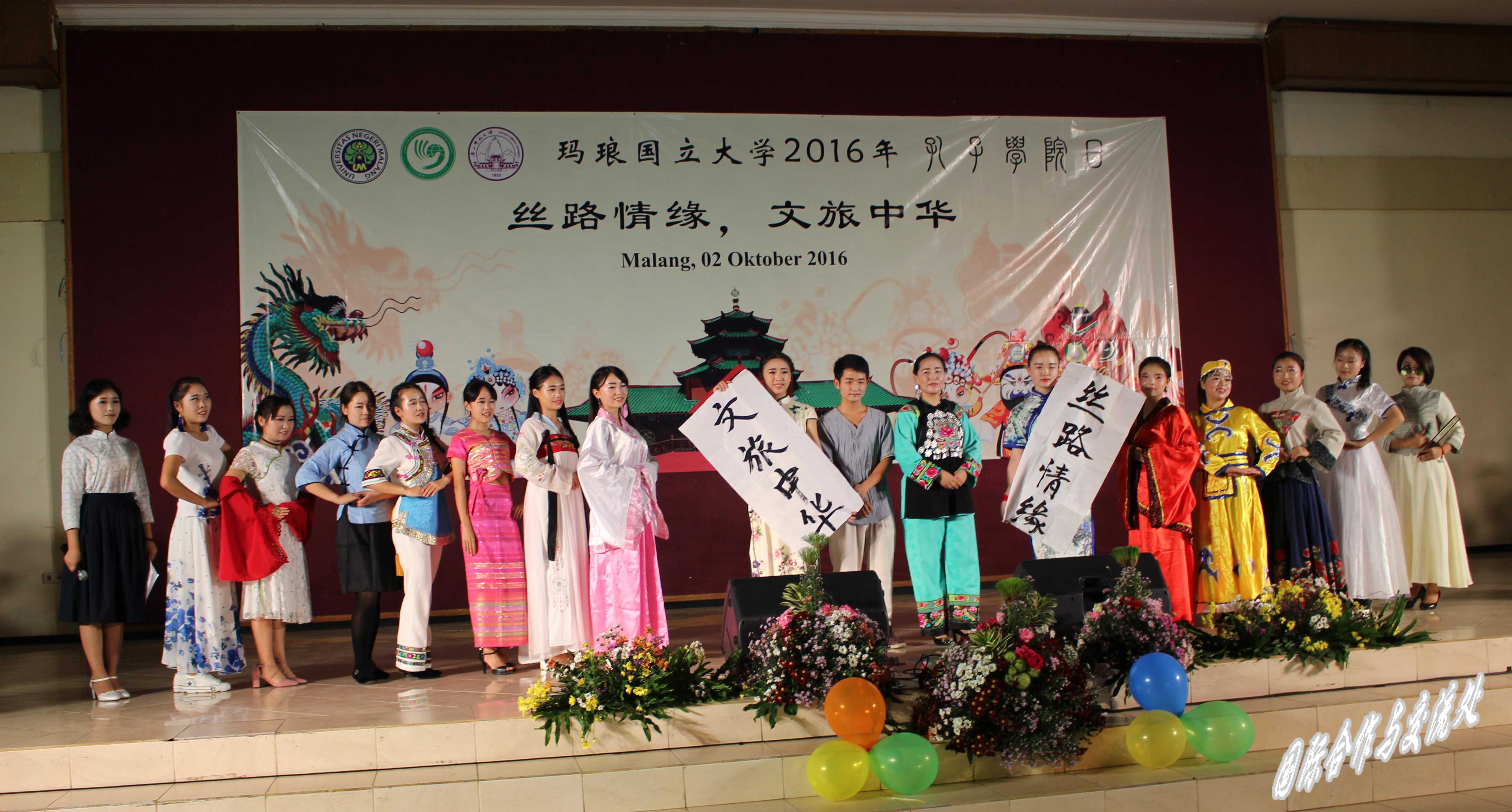 世界杯官网学生印度尼西亚玛琅国立大学表演《中华民族服装秀》