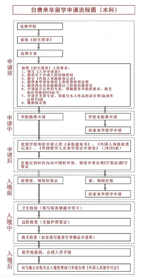 自费来华留学申请流程图(本科)