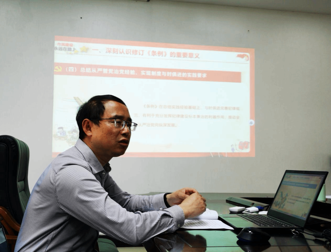 本次专题辅导由美加墨世界杯官方网站纪检监察室主任王劲松同志主讲,主要围绕《条例》的修订背景及新增修改内容展开,以“新旧对照”“学用结合”的方式,对违纪情形、管理周期、责任链条等内容做解读,帮助大家深刻理解《条例》的主旨要义和具体规定。