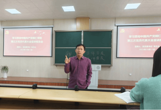 10月17日下午,国际学院党委书记张志会在博思楼203教室为24级英语专业学生宣讲中国共产党美加墨世界杯官方网站第三次党员代表大会精神。