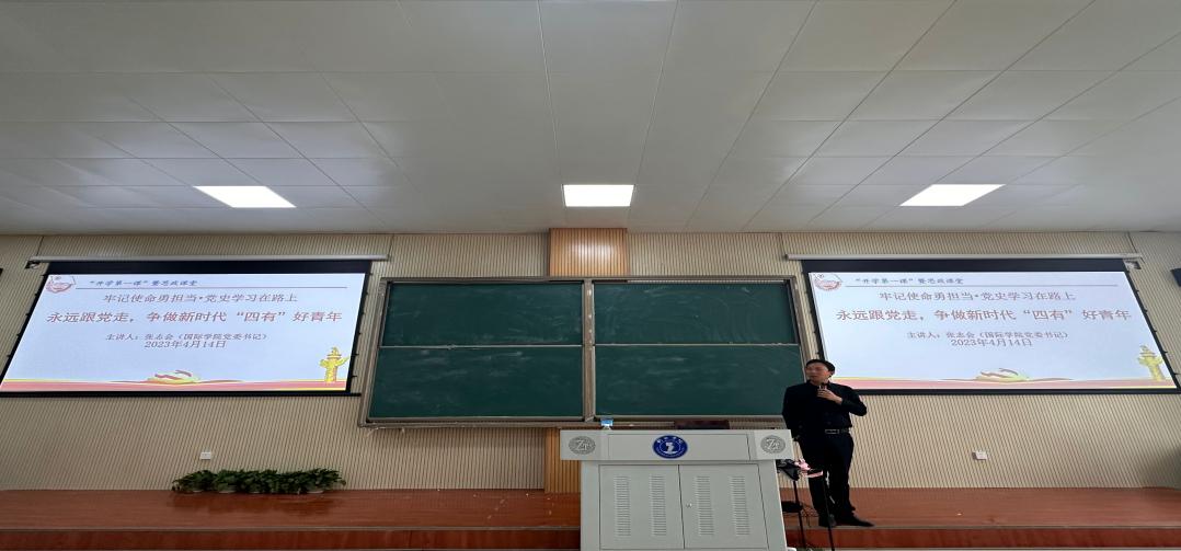 为进一步提高团员意识,增强团员责任感,强化大学生团员青年对党的知识的理解和掌握,提高团员干部的综合素质及业务知识,4月14日中午,国际学院党委书记张志会教授在博思楼104以《永远跟党走,争做新时代‘四有’好青年》为题,对第45期团校培训学员上党课。