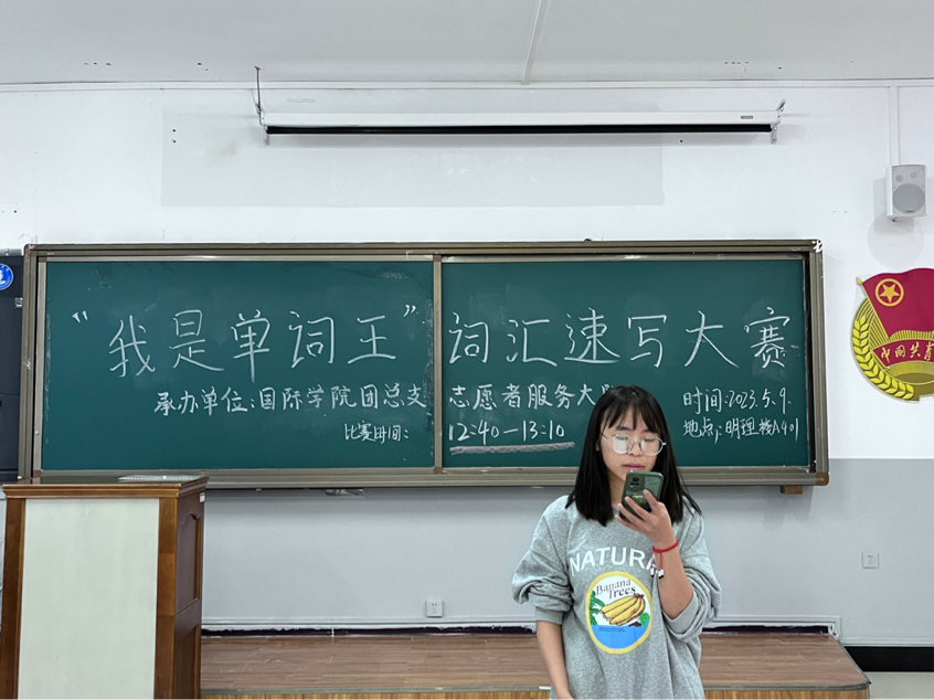 为激发学生对英语学习的兴趣,扩展学生英语单词的储备量,营造良好的英语学习氛围,切实提高学生学习英语的兴趣和积极性,丰富校园文化内容,给广大学生提供一个展现自我、提升自我的舞台,国际学院于2023年5月9日中午12:40在明理楼A 401教室举办“我是单词王”词汇速写大赛。