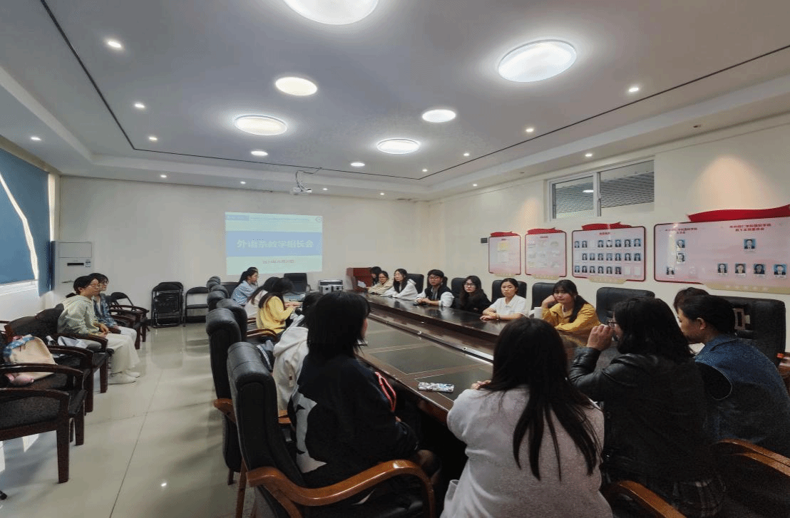会议由外语系主任胡红渊主持,老师们与22、23、24级各班学习委员和学生代表齐聚一堂,各班代表发表对各任课教师的课堂感受。胡红渊强调了教学相长对于外语教学的重要性,指出师生间的良好互动是提高教学效果、培养优秀人才的关键因素。