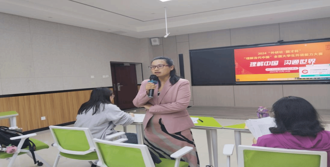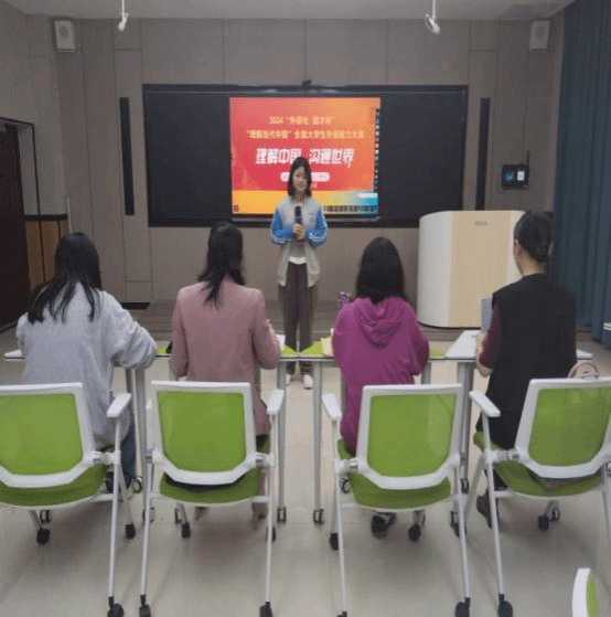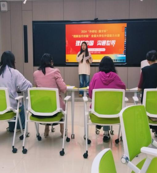 10月14日“外研社•国才杯”“理解当代中国”全国大学生外语能力大赛综合能力赛项美加墨世界杯官方网站选拔赛口试部分在明理楼A301教室举行 ,本次比赛以中国文化的龙为主题,吸引了众多英语爱好者的积极参与。