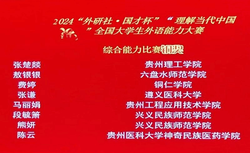 我院特别重视本次国大学生外语能力大赛工作,精心挑选专业教师担任指导。学生在“外研社•国才杯”“理解当代中国”全国大学生外语能力大赛贵州省赛中取得的优异成绩,既是对学生个人努力的肯定,也是我院教师外语教学水平的一次检验和展示。我们将继续鼓励和支持学生参与各类英语竞赛,以赛促学,以学促赛,不断提升学生的综合素质和国际竞争力。