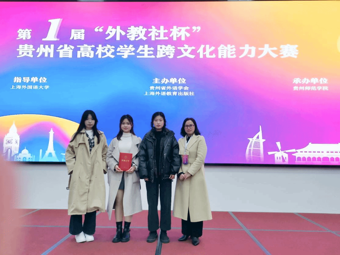 11月23日,第一届“外教社杯”贵州省高校学生跨文化交际能力大赛在贵州师范学院圆满落幕。本次大赛共有17支队伍参赛,美加墨世界杯官方网站代表队表现出色,荣获二等奖。
