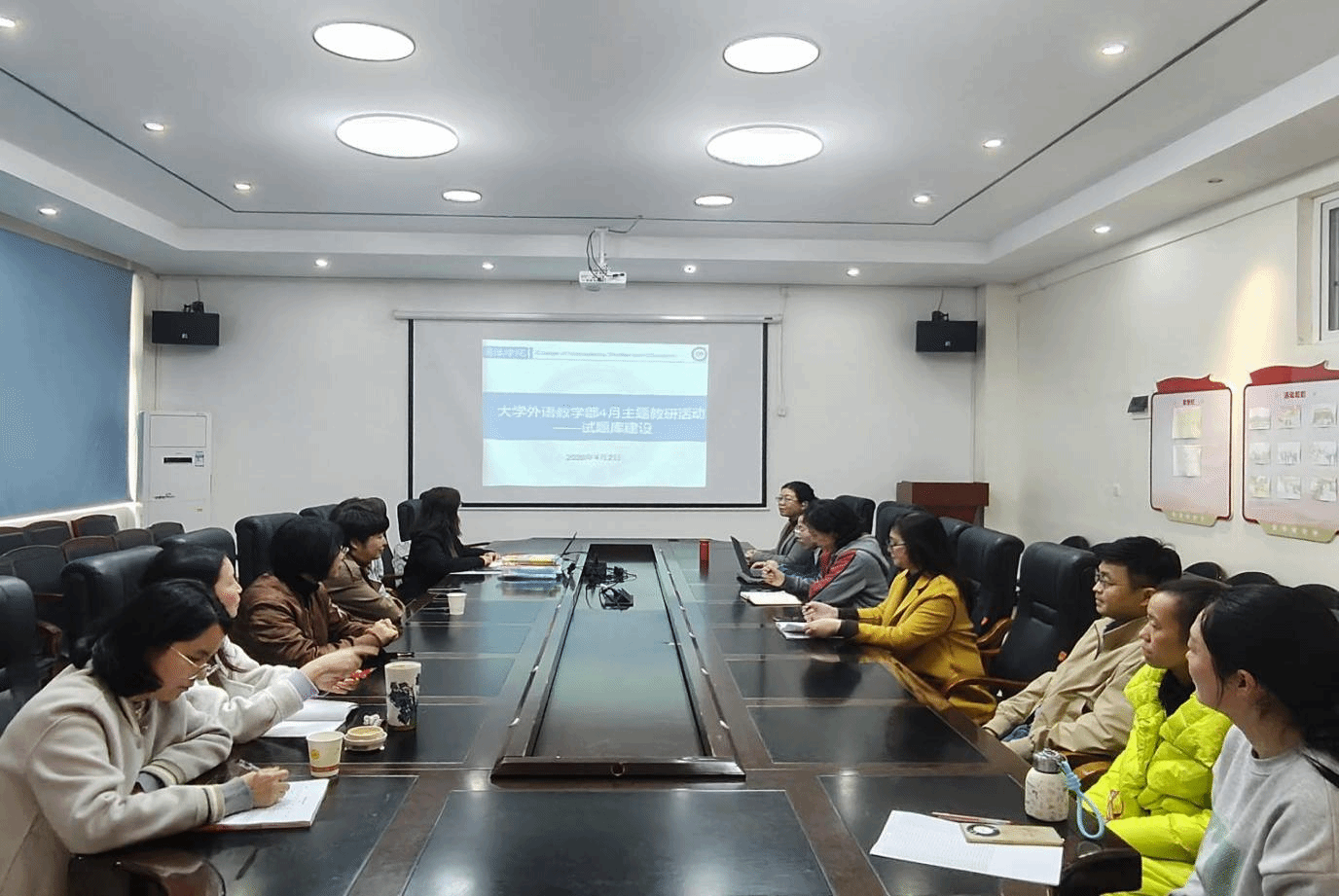 4 月 2 日,国际学院大学外语教学部在学院三楼会议室召开 4 月份主题教学研讨会,会议聚焦试题库建设与教学质量提升。李谦院长、杨芹副院长、陈颖副院长亲临会场指导,全体大学外语任课教师参会。
