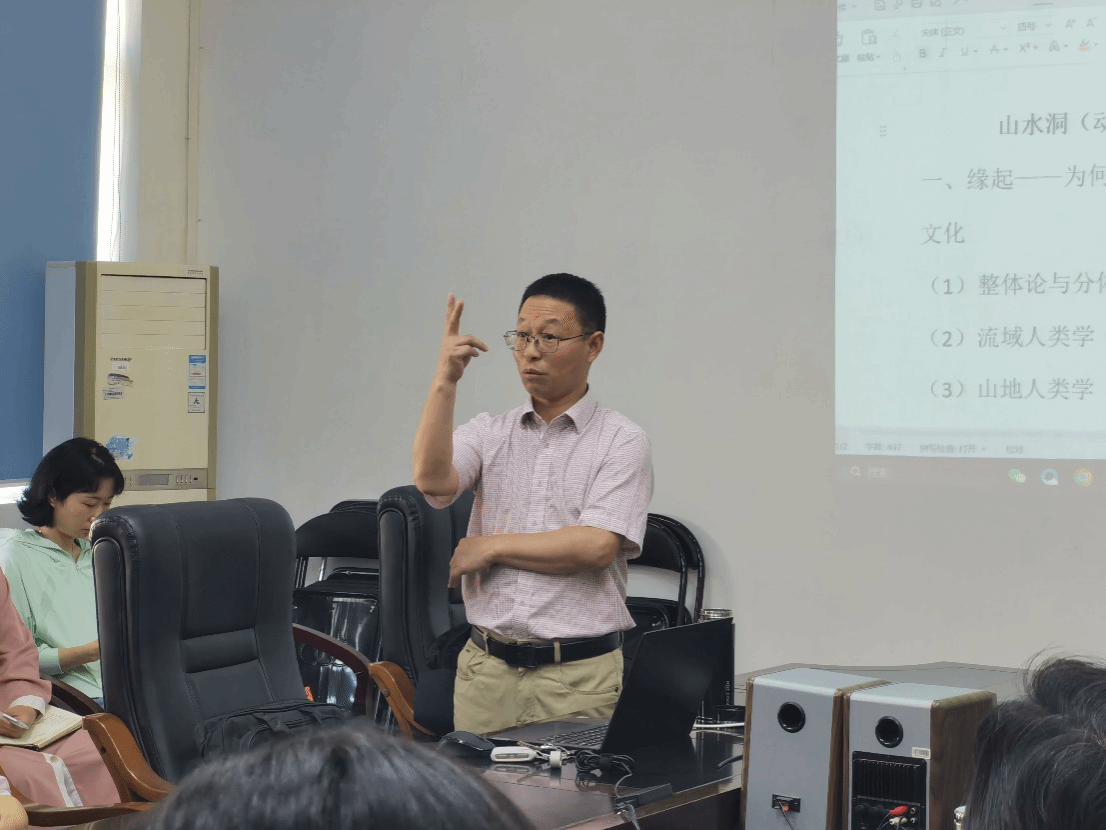 本次讲座是美加墨世界杯官方网站社会科学普及周举办的系列专题讲座之一, 龙开义教授紧紧围绕“山水洞(动)人——理解铜仁民族文化的四个关键词 ”这个主题开讲。他从山、水、洞、人四个角度对铜仁民族文化进行了详细解读,并表示文化的产生会受到环境的制约,会在人文与生态的制衡中传承发展和创造转化。因此,欲从整体上理解铜仁民族文化的结构、特性,需要立足于“山、水、洞、人”这四个关键词,揭示其生态环境、生计模式、信仰结构、族群构成、社会结构、语言结构等多样性。龙开义还从政治整合、文化标准化、经济互动等层面进一步阐述了“山水洞人”,并在此语境下阐释了铜仁文化多元一体形成的机制——双轨制的内涵。