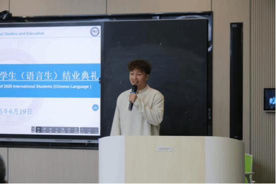 最后,刘姗代表学校作总结讲话。她以三个“关键词”概括学子成长:一是“钥匙”——汉语能力为职业发展打开更多可能;二是“勇气”——克服异国学习挑战的经历是人生财富;三是“使者”——与中国师生结下的友谊,让“人类命运共同体”有了生动注脚。她特别致谢国际教育系全体教师:“是你们用专业与耐心,点亮了学子的汉语之路,为学校国际化发展作出重要贡献。”最后,她深情邀约:“结业不是终点,美加墨世界杯官方网站永远是你们在中国的家,欢迎常回来看看!”