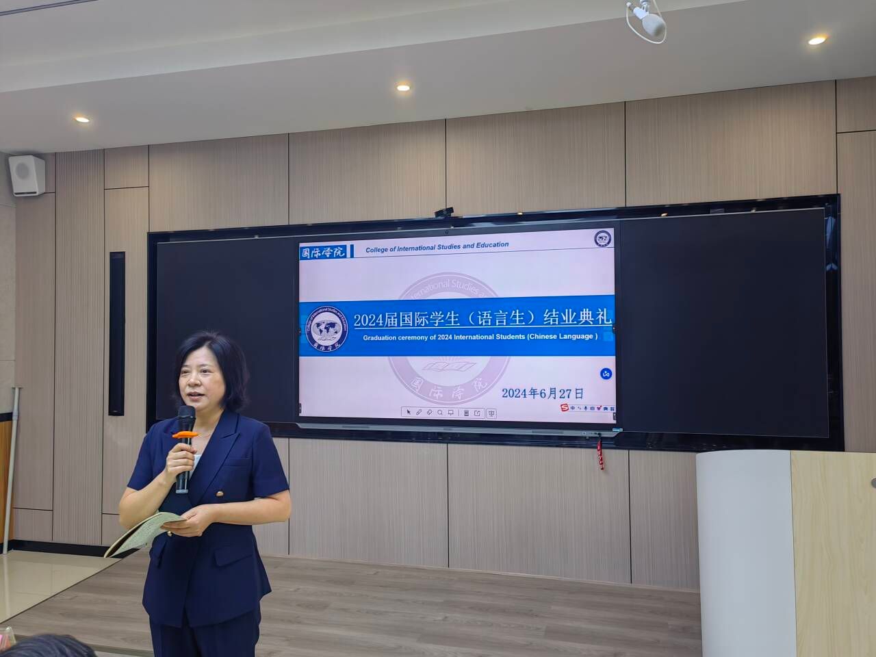 6月27日上午,我院2024届国际学生(语言生)结业典礼在明理楼A301智慧教室顺利举行。院党委书记张志会,副院长杨芹、李谦,党政办主任皮瑾煜,国际中文教学全体教师,2024届全体语言生参加了此次典礼。典礼由国际教育系负责人何沐老师主持。