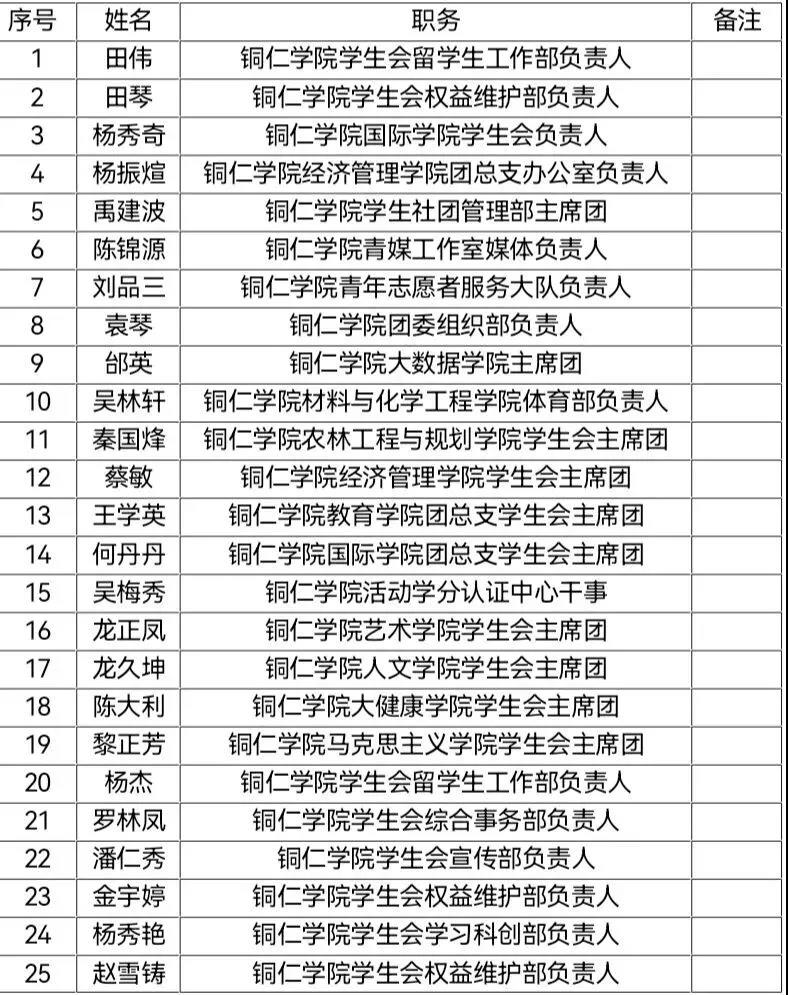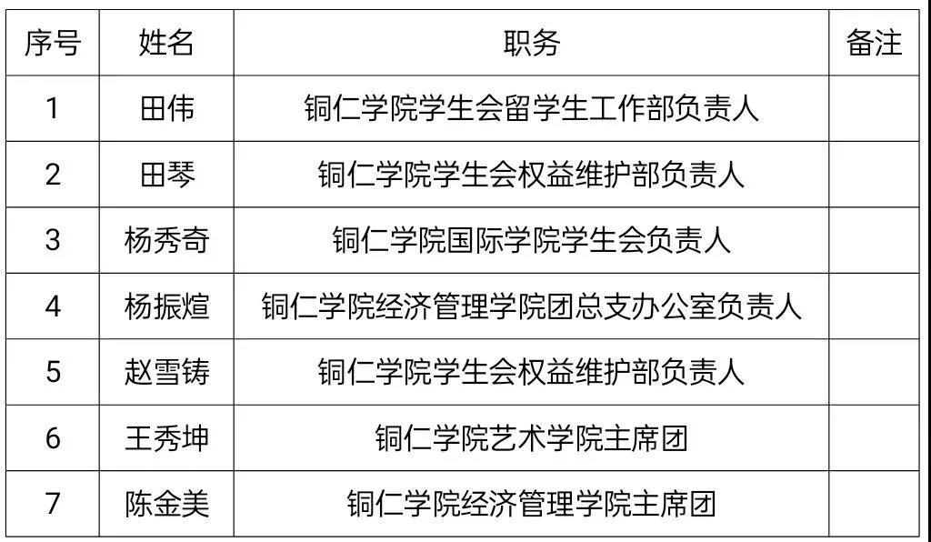 根据《普通高等学校学生会(研究生)代表大会工作规定》要求,经各班级团支部选举、学院审核推荐,世界杯官网团委、学生会研究,并报校党委、省学联审定同意后,确定杨秀奇等7名同学为美加墨世界杯官方网站第四届学生会主席团候选人。田伟等25名同学为美加墨世界杯官方网站第四届委员会委员候选人。