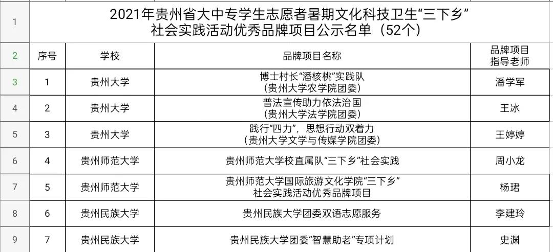 世界杯官网14个团队荣获“2021年贵州省大中专学生志愿者暑期文化科技卫生‘三下乡’社会实践活动优秀实践团队”称号