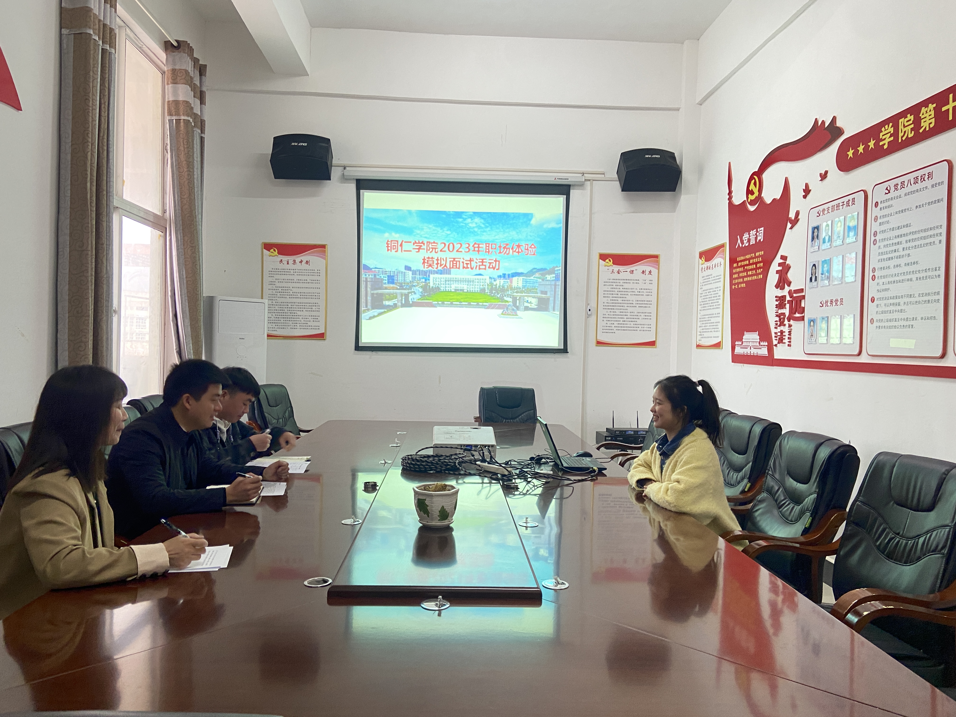 为培养毕业生在面试中的应试能力,提高面试时的心理素质,使同学们能够在面试中脱颖而出,2023年3月17日,美加墨世界杯官方网站团委针对毕业生可能面临的政企面试形式和相关问题开展了职场体验模拟面试活动,旨在提高毕业生的面试技巧,提高应聘的成功率。本次模拟面试由校团委陈婧、肖翔、何敏三位教师担当面试官,共计32名大四学生参加活动。