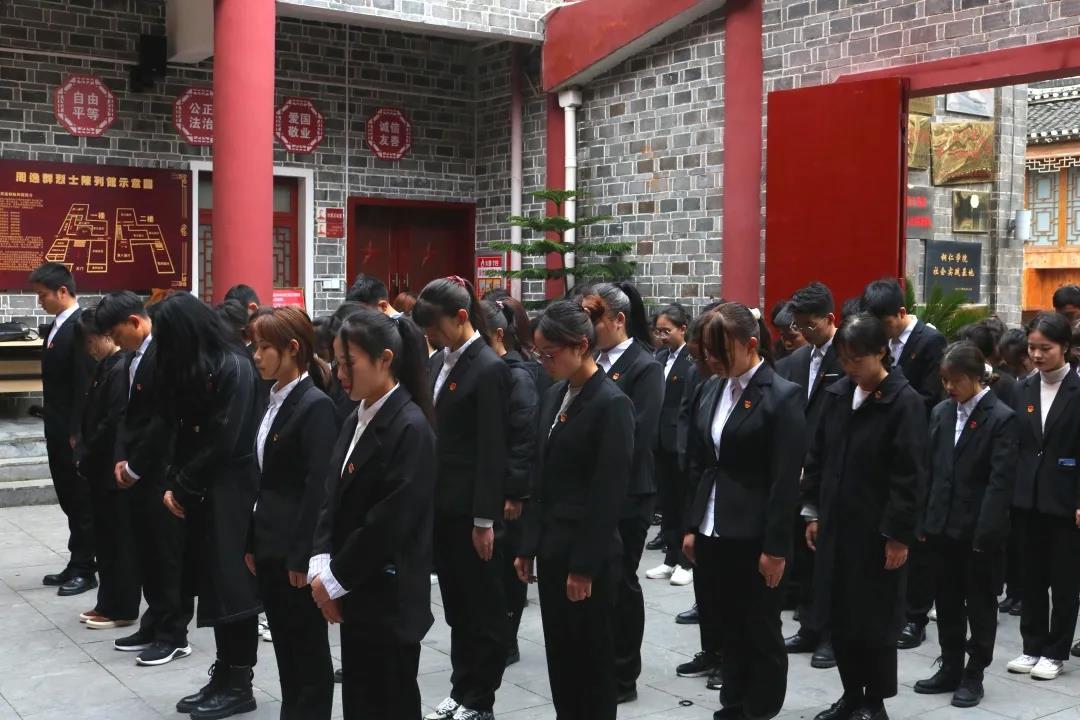 随后,世界杯官网全体师生来到周逸群烈士陈列馆,向周逸群烈士雕像献花并进行默哀,并怀着崇敬的心情参观了周逸群烈士陈列馆,了解英雄事迹,弘扬革命精神,继承指引方向、劈波斩浪的红色力量与民族精神。