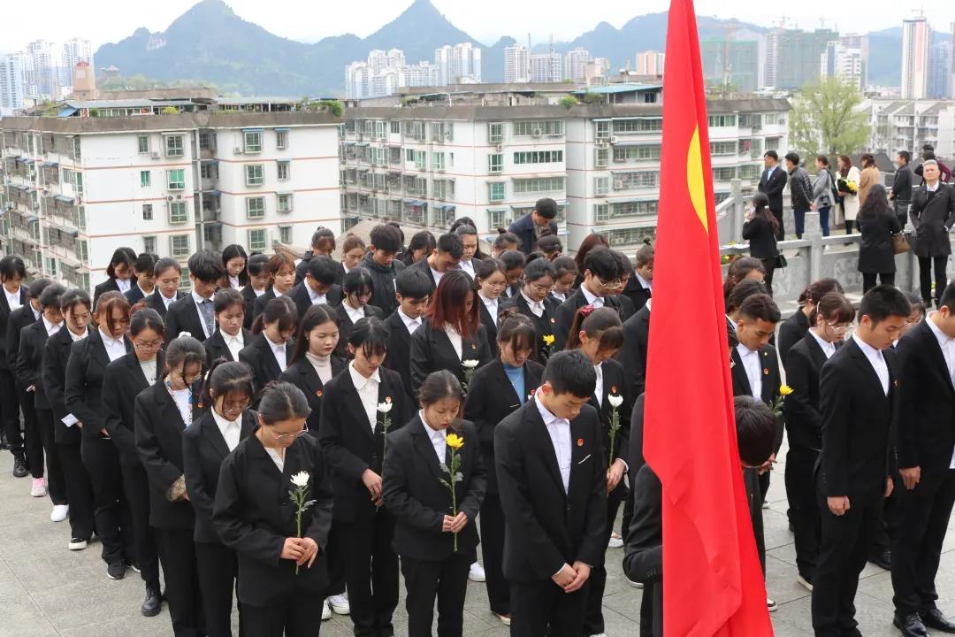 烈士忠魂贯苍穹,白云轻抚伴从容。4月1日,世界杯官网组织师生代表60余人到铜仁市文笔峰烈士陵园、周逸群烈士陈列馆开展了“祭英烈、学党史、跟党走”主题团日活动,共同学习党史,缅怀革命英烈。