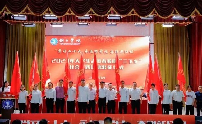 仪式上,刘德平宣读了《美加墨世界杯官方网站2023年暑期“三下乡”社会实践活动工作方案》。他说,世界杯官网2023年暑期“三下乡”社会实践活动仍实行项目化管理,以开展理论普及宣讲团、“多彩贵州”专项活动、“党的创新理论宣讲”专项行动计划、“红领巾先锋工程关爱少年儿童”专项行动计划、普法宣讲、禁毒防艾宣讲等为主要内容,以服务青年学生成长成才为目标,组建了116支队伍奔赴基层开展社会实践活动。