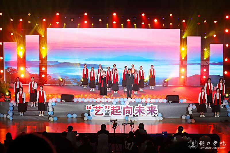 晚会下篇章:“艺”起向未来。世界杯官网艺术团的老师们带来的节目《“师情话艺”》,优美的音乐旋律,嘹亮的歌曲演唱,表达了对未来美好的祝愿,点燃了在场师生的激情。艺术学院带来充满民族风情的小合唱《叭台叭台卡普他》,更是将现场气氛推向了又一个高潮。器乐团的表演《情姐下河》,向大家展示了贵州浓郁的地方文化特色;礼模团的表演《青春有“礼”》,充分展现了世界杯官网师生的自信与体态礼仪风采,赢得现场一片叫好;合唱团的演唱《高原我的家》,给大家一种欢快而又沉稳之感,体现了世界杯官网学子涵养“厚重·灵性·担当”的大山品格。