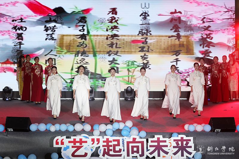 晚会上篇章:共绘铜院“美”。茶艺+书画+器乐表演《春江花月夜》,现场如呈一幅淡雅的水墨画,给现场的观众一种宁静致远的意蕴。朗诵表演《水调歌头·重上井冈山》,回顾了建党百年的风雨历程,不断激励着青年一代奋勇前行。还有,流行歌唱表演团和校园十佳歌手带来的歌曲联唱《有我+奉献+星辰大海》带动了现场的气氛,街舞《青春律动》更是引得现场的观众欢呼连连,民族舞蹈《陶醉了》的舞者们以优美的舞姿展示自己的热情和活力,让现场的观众尽情陶醉。